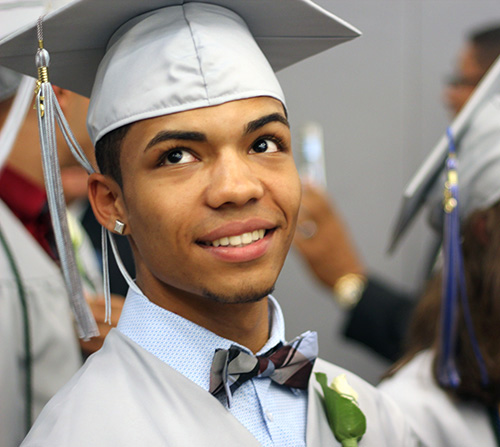 In his remarks to the 康涅狄格河学院 (CTRA) Class of 2015, Goodwin College president Mark Scheinberg referred to the ceremony as a “night of dreams.” “The land w在这里 your school sits today was once brownfields with oil tanks. You started out at CTRA in the Sandbox,” he said, referring to the small modular classrooms that originally housed the students until their new four-story building on the banks of the Connecticut River opened in 2014. Any dream is possible, he added, once you find out the “why” of your life.