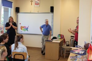 我们的旅程中最有意义的部分之一是与不同群体的学生接触。 在Jaroszowka,我们和三年级到八年级的小学生一起学习美国文化和地理。 对于年龄较小的学生,我们强调了美国的广袤,探索了各州的地图,并讨论了美国国旗等象征。 年纪较大的学生提出了有关美国政治、无家可归者和社会问题的深思熟虑的问题——这证明了他们的好奇心和学习的渴望。