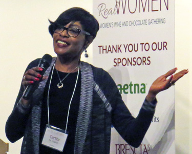 On Thursday, February 26, the Pond House Café in West Hartford’s Elizabeth Park was filled with 150 inspiring and caring individuals at Goodwin College’s celebration, Real Life, Real Women: Wine and Chocolate Gathering. The room for the sold-out event was elegantly adorned with twinkling lights, and guests were tempted with decadent chocolate and a wonderful selection of wines.